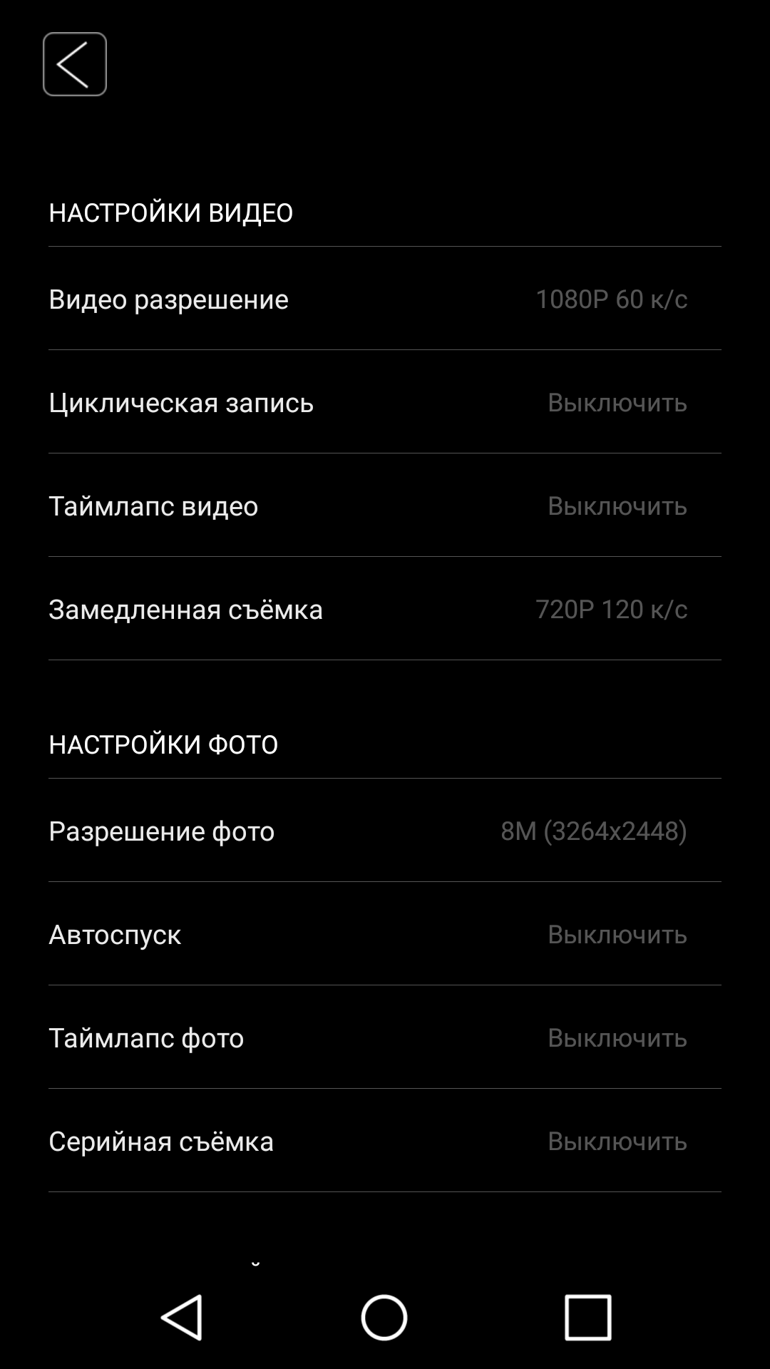 Приложение содержит те же самые настройки, которые доступны в самой камере. Это большой плюс, так как разработчики множества видеосъемочной техники ограничиваются урезанным набором функций в фирменных мобильных приложениях.