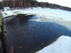 Следующий на очереди вопрос — роллинг-шаттер (подробнее см. в материале Роллинг-шаттер в видеосъемке — описание дефекта, примеры, пояснения). Наклон вертикалей в случае с экшн-камерой не измеришь — слишком велик угол обзора у этих аппаратов. Однако имеется неплохой способ все-таки разглядеть роллинг-шаттер, как говорится, в действии. И это можно проделать с абсолютно каждым любительским видеоснимающим гаджетом. Надо всего лишь прикрепить аппарат к чему-то, что дает частую и сильную вибрацию. Правда, такой фокус получится лишь с камерой, имеющей небольшой вес и размеры. Ну, и еще, конечно, невысокую стоимость, ведь риск того, что точная механика при тряске повредится, остается высоким. Кстати, выше мы сожалели, что липкие основания «не работают» на холоде. Какого бы высокого качества они ни были, даже известной марки 3M. Причем холодом считается даже температура выше нуля по Цельсию. Поначалу крепления как-то удерживаются на пока еще теплых поверхностях, вынесенных из помещения, но стоит им охладиться... Что и произошло в следующей съемке.