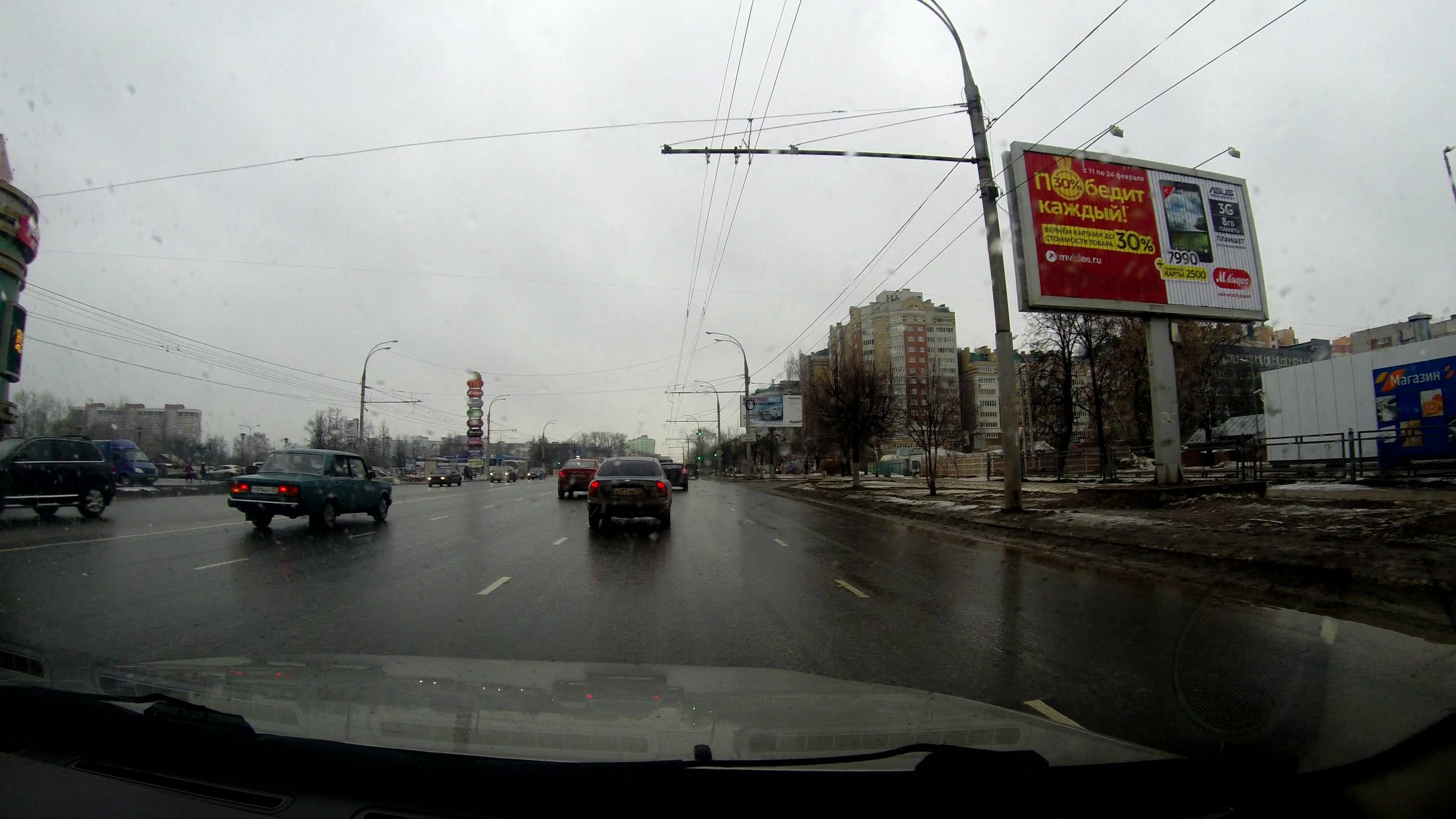 А что, если кто-то вздумает использовать камеру в качестве автомобильного видеорегистратора? Один из важных факторов при выборе регистратора является не только разрешающая способность (с этим у нашей камеры все в порядке), но и достаточная частота кадров, а также достаточная выдержка, позволяющая получить четкие стопкадры без смазов. Посмотрим, как обстоит с этим у нашего подопытного. Для этого произведем съемку из автомобиля в нескольких режимах, отличающихся друг от друга как размером кадра, так и частотой.