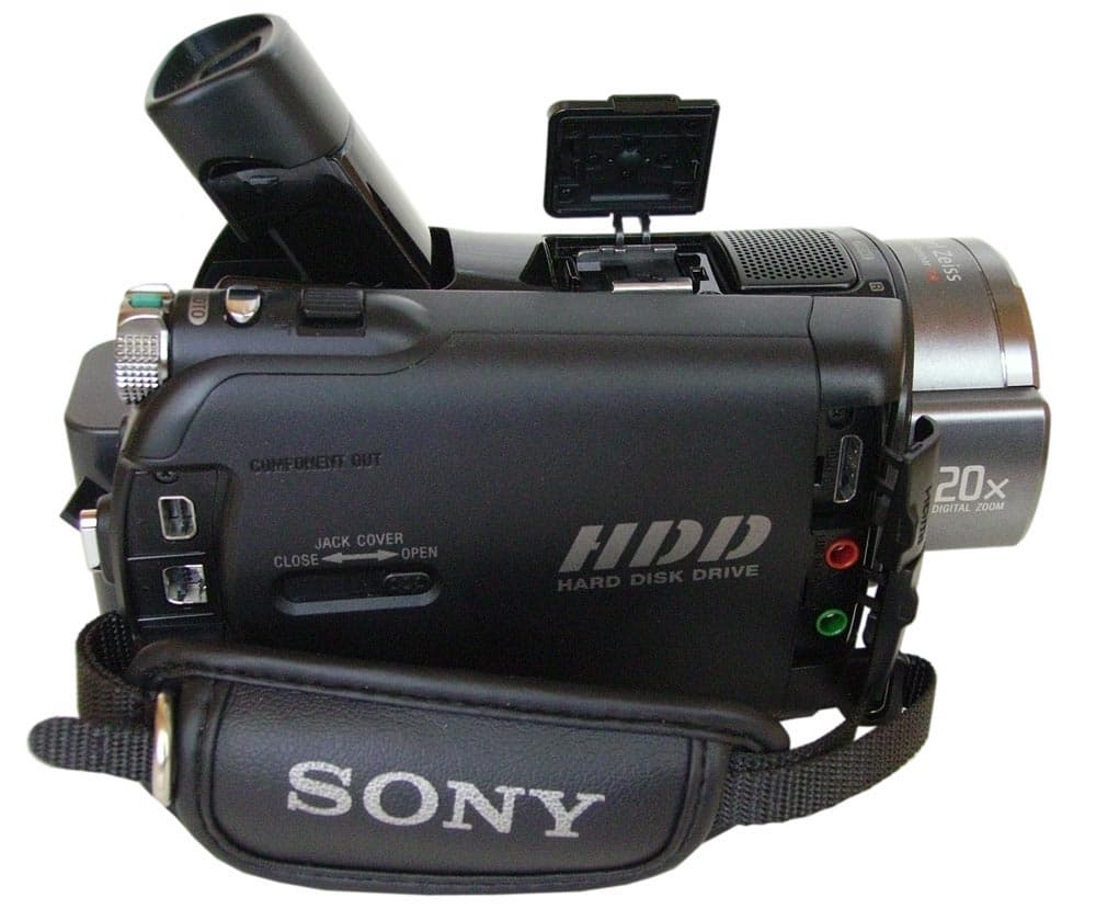 Отодвигающаяся пластмассовая шторка открывает доступ к компонентному и AV-выходам (необходимые кабели входят в комплект). В передней части камеры — еще две резиновые заглушки. Под верхней — выход HDMI, под нижней — выход для наушников и микрофонный вход. Верх камеры венчает неразрывно связанный с камерами SONY разъем с фирменным наименованием Active Interface Shoe, могущий служить площадкой для приобретаемого отдельно навесного микрофона, вспышки либо источника накамерного света.