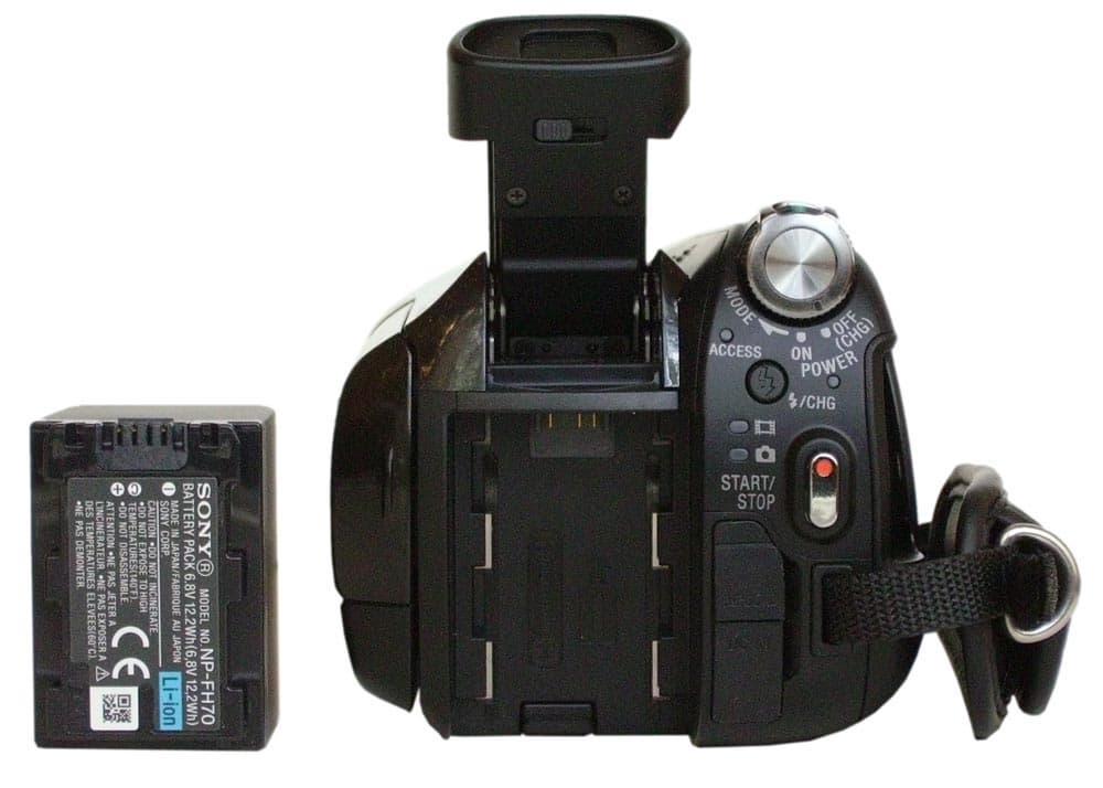 Литий-ионная батарея NP-FH70, время зарядки которой составляет 170 минут (по паспорту), позволяет работать в среднем до полутора-двух часов при открытом ЖК-экране. Рекомендуемая температура работы — от 10 до 30 градусов Цельсия. Если температура окружающего воздуха ниже или выше рекомендуемых значений, то время работы может сильно отличаться от заявленного. Конечно же, не в сторону увеличения.