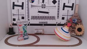 Чтобы выяснить эту скорость считывания, для сначала вычислим единственное проявление роллинг-шаттера, которое поддается измерению: наклон вертикалей. Это делается с помощью специальной установки, главная ее особенность — постоянная неизменяемая скорость вращения диска, на котором расположено полотно с вертикальной линией. Главная ценность полученного результата состоит в том, что эти градусы наклона можно впоследствии сравнить с результатом измерения роллинг-шаттера других камер, которые тестировались или будут тестироваться аналогичным образом.