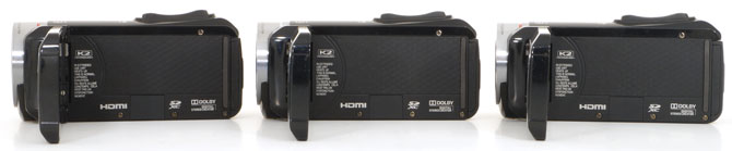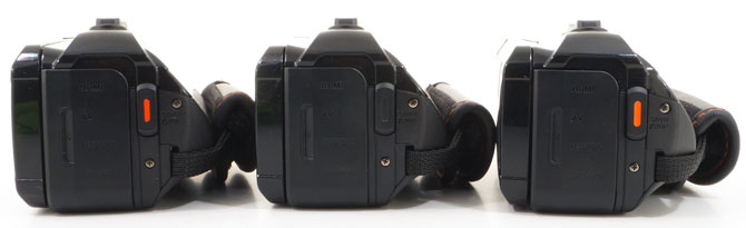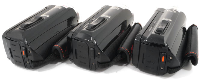 На торцах корпусов расположена традиционная главная кнопка REC. Интересно, почему она выделена красным цветом лишь в моделях, имеющих лампу подсветки? Спишем на тестовость образцов.