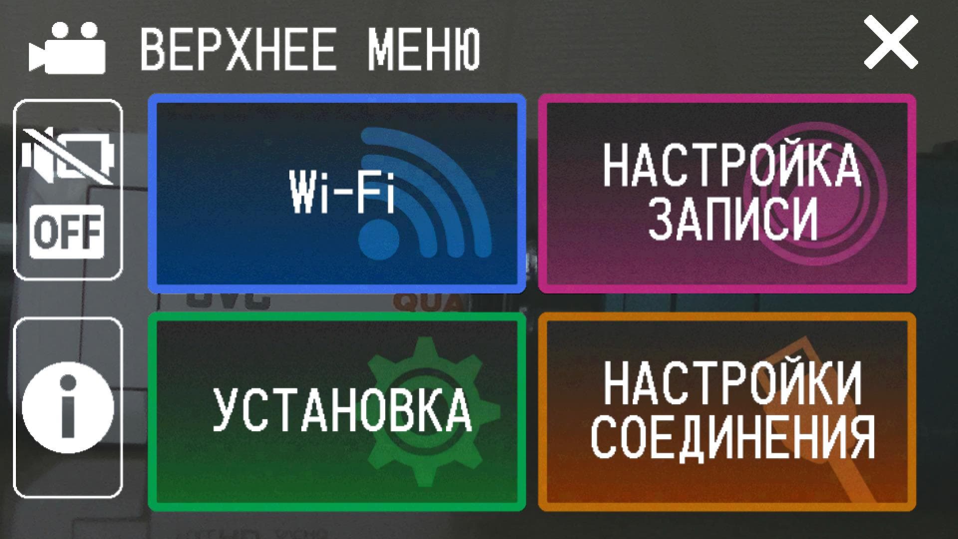 Служебное меню камеры состоит из нескольких разделов, разбитых по функциональности: системные настройки, параметры съемки, функции беспроводной и видеосвязи.