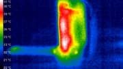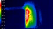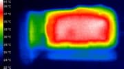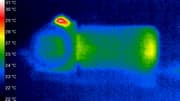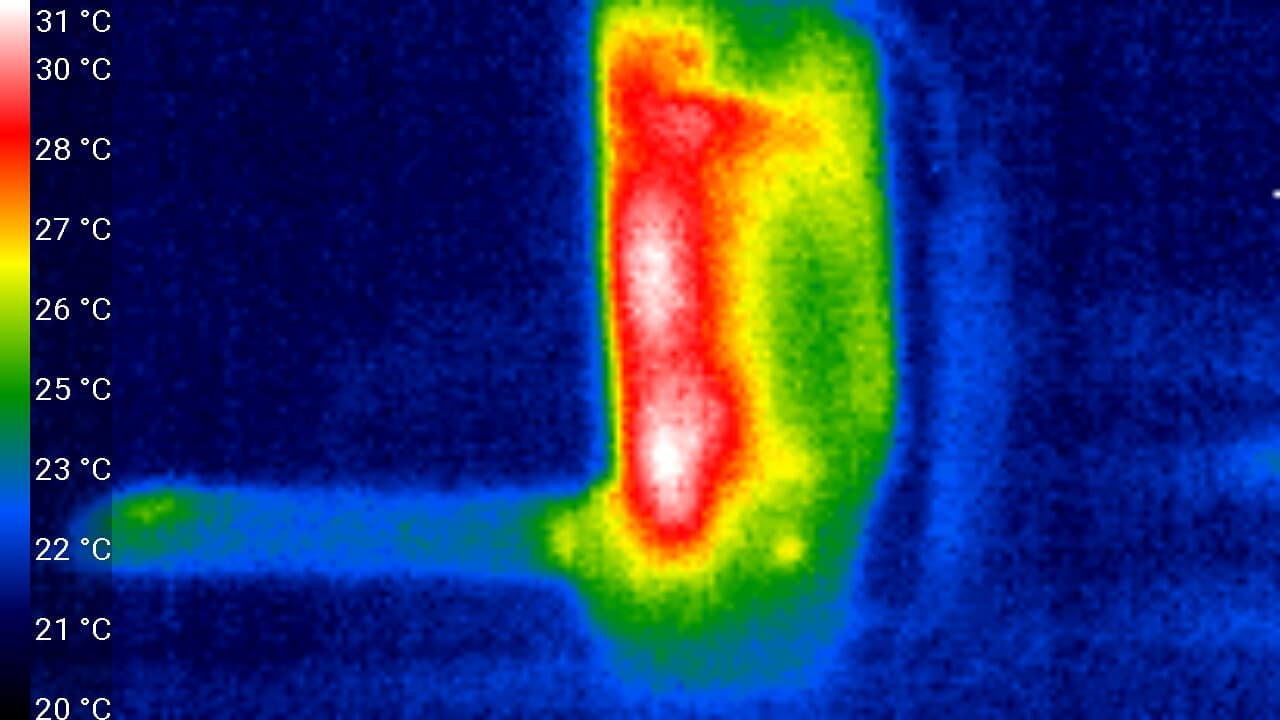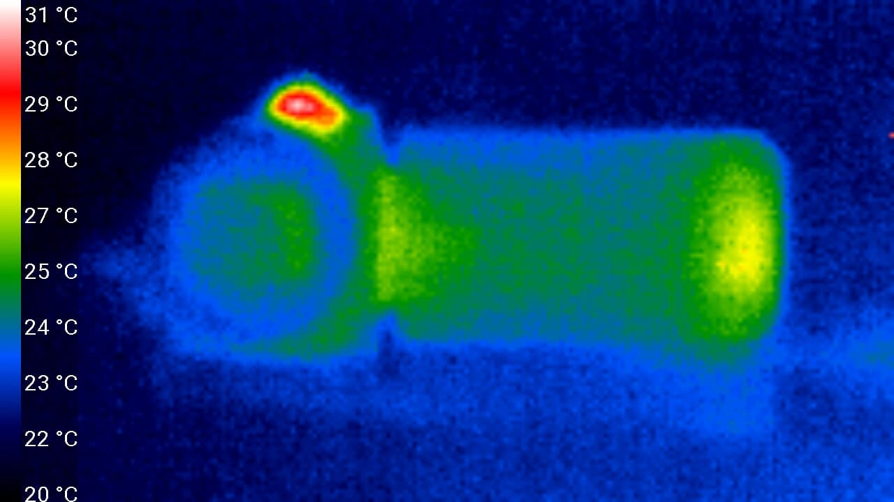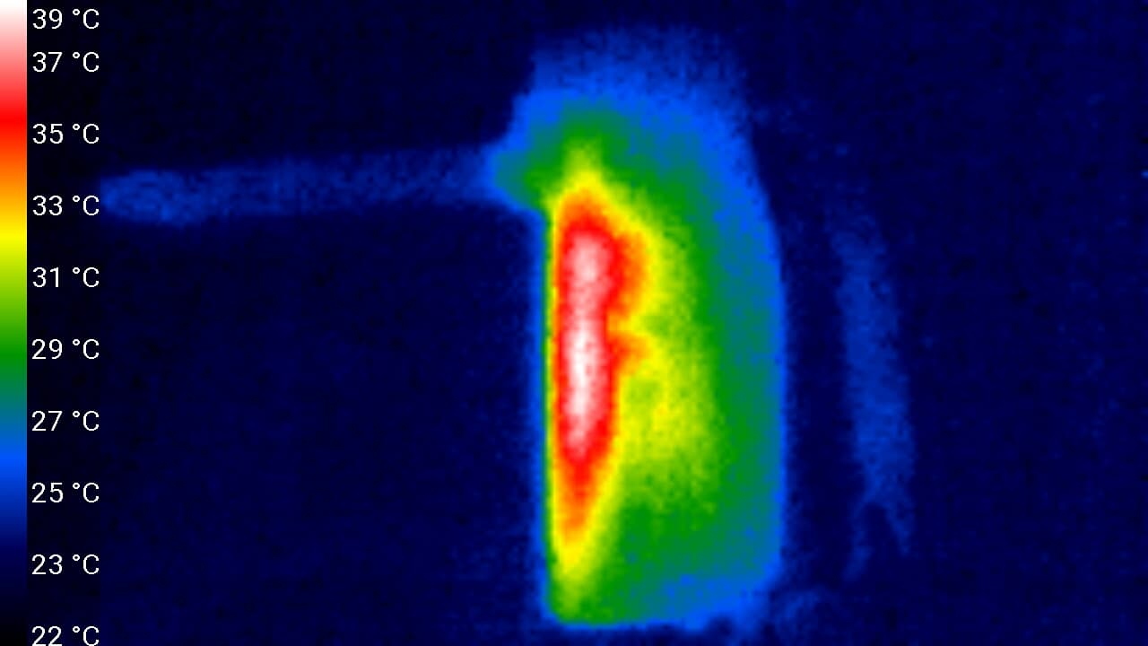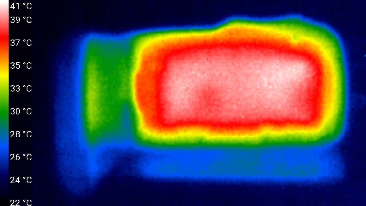 Во время длительной записи камера почти не нагревается, так как используемые в ней электронные компоненты не отличаются высоким энергопотреблением. Максимальный нагрев наблюдается на панели под откидным дисплеем — здесь температура поверхности корпуса достигает всего лишь 41 °C.