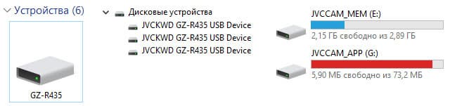 При подключении камеры к ПК по USB аппарат становится переносным USB-накопителем. При этом, помимо карты памяти, вставленной в камеру, в системе регистрируется еще один накопитель, запись на который невозможна.