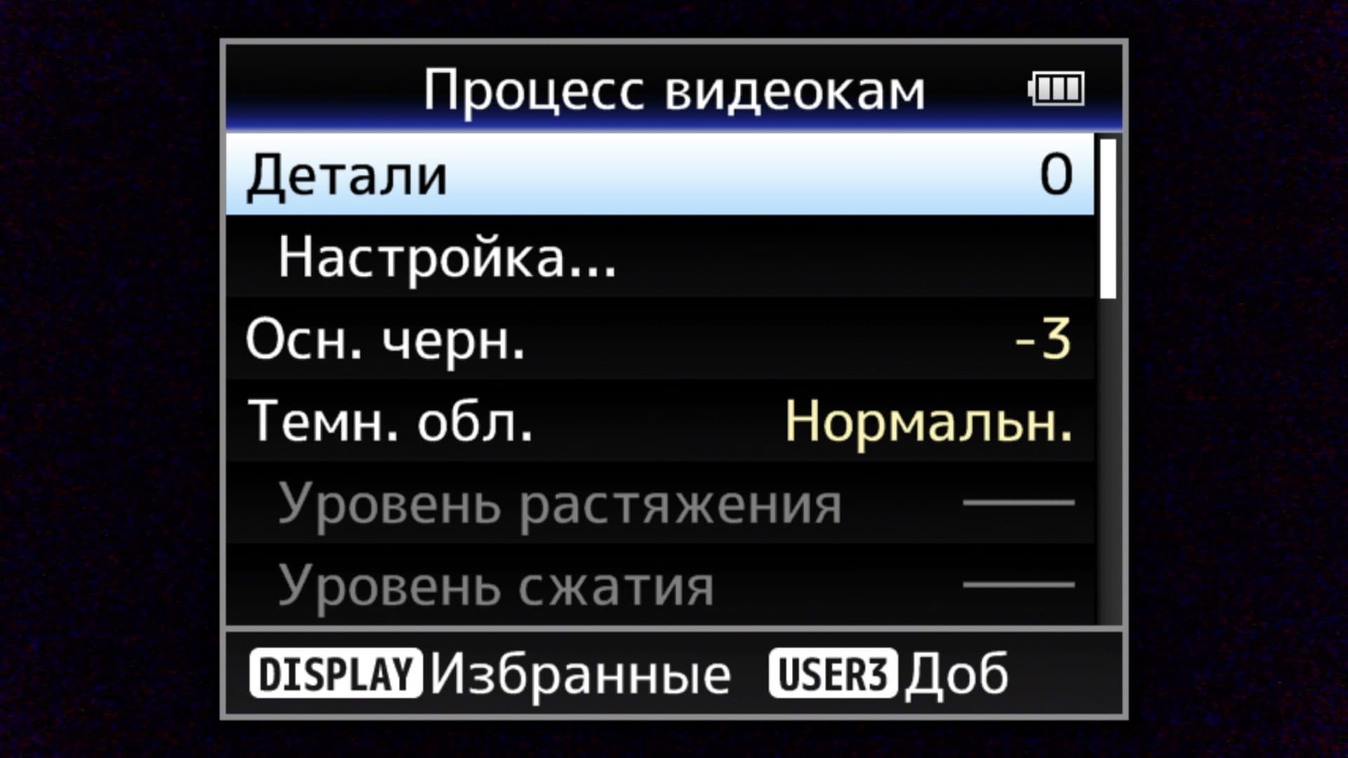 Как и в 200-й модели, при переключении режимов из 4K в HD или SD камере требуется перенастройка экспозиции, потому что заводские установки, ограничивающие автоматический диапазон экспозиции, слишком узки. Их, разумеется, можно изменить, о чем будет сказано ниже.