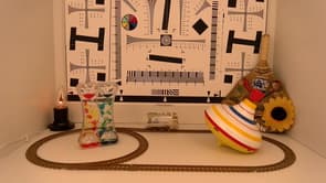 Следующий вопрос, требующий рассмотрения — роллинг-шаттер (подробнее см. в материале Роллинг-шаттер в видеосъемке — описание дефекта, примеры, пояснения). Стендовое измерение углов наклона вертикальный линий в разных режимах записи не показало совершенно никаких отличий от результатов аналогичного измерения, которое было проведено во время тестирования камеры GY-HM200: все те же постоянные во всех режимах 4,6°. Данный результат можно считать сегодня средним, который не даст особо заметных искривлений или наклонов.