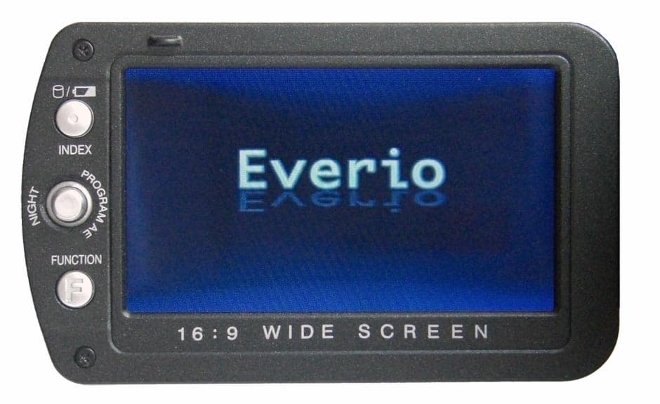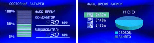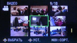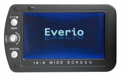Глянцевый 2,8" широкоэкранный (207000 пикселей) ЖК-монитор имеет яркость, достаточную для ведения съемки при дневном свете. Но, конечно, не при ярком солнечном — тут без видоискателя не обойтись. Слева от экрана расположены: кнопка INDEX, при нажатии которой на экране отображается информация о количестве свободного места на жестком диске, и текущий уровень заряда батареи. Под кнопкой INDEX находится пятипозиционный рычажок, с помощью которого производится навигация по меню. Этот же рычажок во время съемки позволяет получить быстрый доступ к таким функциям, как ночная съемка, или выбрать нужный режим: Сумерки, Прожектор, Снег или Спорт. Нижняя кнопка FUNCTION содержит небольшое меню, где можно быстро выбрать предустановки баланса белого, включить/отключить отображение "зебры" (70 и 100%), и, наконец, задействовать один из представленных здесь эффектов: сепия, черно-белая съемка, классический фильм, или строб.