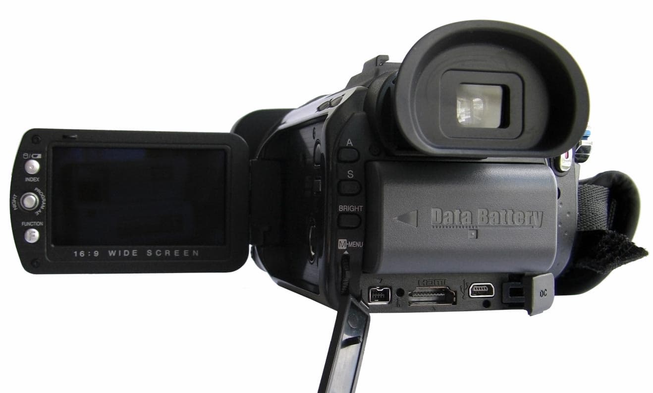 Под аккумулятором находятся две пластмассовые крышки на резиновых ножках, под ними скрываются: порт IEEE 1394 (который используется для перезаписи видео с камеры на DVD-рекордер), DHMI-выход, порт USB 2.0 и слот для подключения питания.