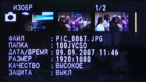 При попытке задействовать карту памяти в качестве носителя видео (SD Kingmax 1 Гб) выяснилось следующее: несмотря на то, что в настройках камеры был выставлен режим FullHD, на карту памяти записывалось видео с разрешением 1440 х 1080 и средним битрейтом 20000 Кбит/с. Возможно, аппарат здесь перестраховывается, боясь появления пропуска кадров или других артефактов из-за недостаточной скорости обмена информацией с флэш-картой.