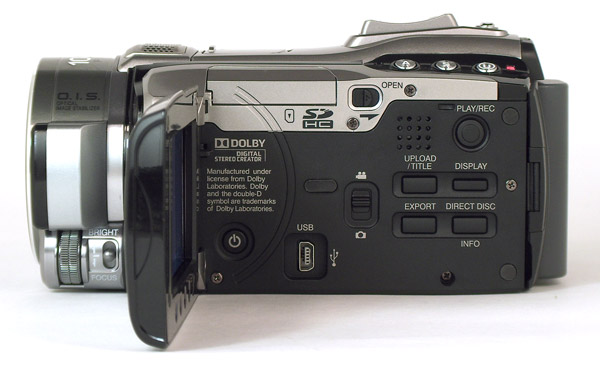 Все входы/выходы, исключая USB, расположены с торца видеокамеры. Над аккумулятором меется откидная дверца, под которой спрятаны композитный видеовыход и вход для микрофона. Слева от аккумулятора под похожей дверцей находятся: выход на наушники, компонентный видеовыход, выход HDMI и гнездо для подключения блока питания и зарядки батареи.
