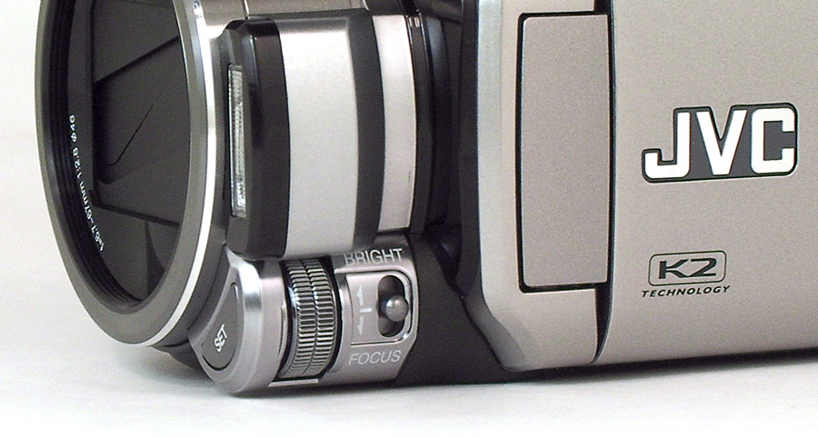 Ещё один характерный признак не-любительских видеокамер: кольцо точной подстройки. Это регулировочное кольцо снабжено рычажком с двумя фиксированными функциями: настройка фокуса и яркости (в видеорежиме от -6 до +6 с шагом 1, в фоторежиме от -2.0 до +2.0 с шагом 1/3 EV). Кнопкой Set, вынесенной вперёд, подтверждается сделанная настройка.