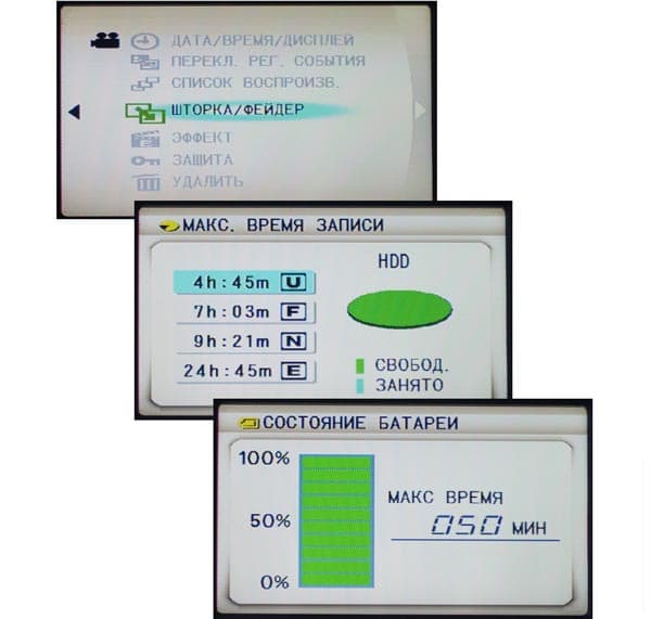 Расставить точки на i было решено путем сравнения тишины, записанной попеременно на жесткий диск камеры и на флэш-карту SD, ведь подразумевалось, что при записи на карту памяти жесткий диск камеры отключится автоматически. Велико же было удивление, когда оказалось, что винчестер невозмутимо продолжает работать, хотя запись производится на SD-карту. Хочется надеяться, что следующие прошивки микропрограммы, управляющей камерой, исправят этот нюанс.