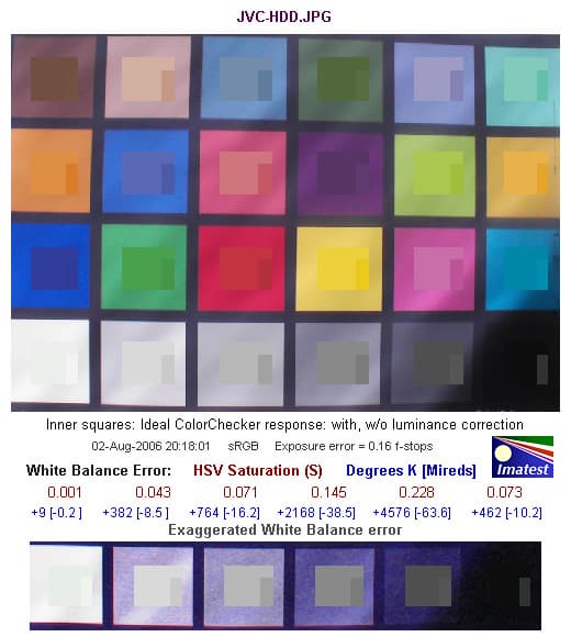 Данная таблица хороша для визуальной оценки правильности цветопередачи. Выше мы обратили ваше внимание на то, что тест проводился при естественном освещении (июль, чистое небо, 17:00 мск.), и на рисунке хорошо видны некоторые отклонения в балансе белого.