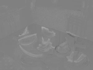 Досужий читатель может самостоятельно провести эксперимент по поиску шумов в изображениях: достаточно загрузить кадр в Photoshop, выполнить команду Image -> Mode -> Lab Color, и нажать комбинацию клавиш Ctrl+2 либо Ctrl+3 (отображение одних лишь каналов a и b соответственно). Шум, присутствующий в рисунке, немедленно отобразится в виде своеобразных вкраплений: