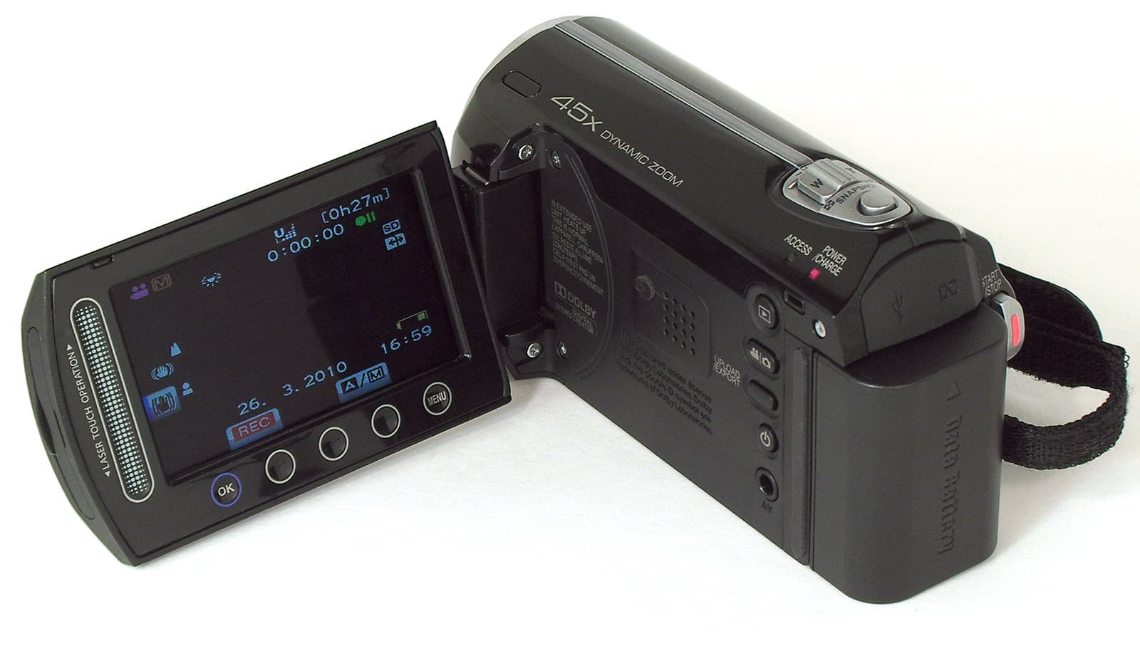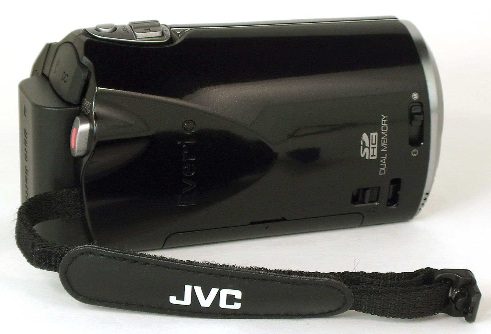 Следует отметить смелость разработчиков JVC, решивших сделать ремешок отсоединяемым. Надёжное крепление удерживает ремень в привычном для всех видеокамер положении, но если его отстегнуть, то ремешок можно накинуть на кисть руки, и транспортировать камеру подобно фотомыльнице.