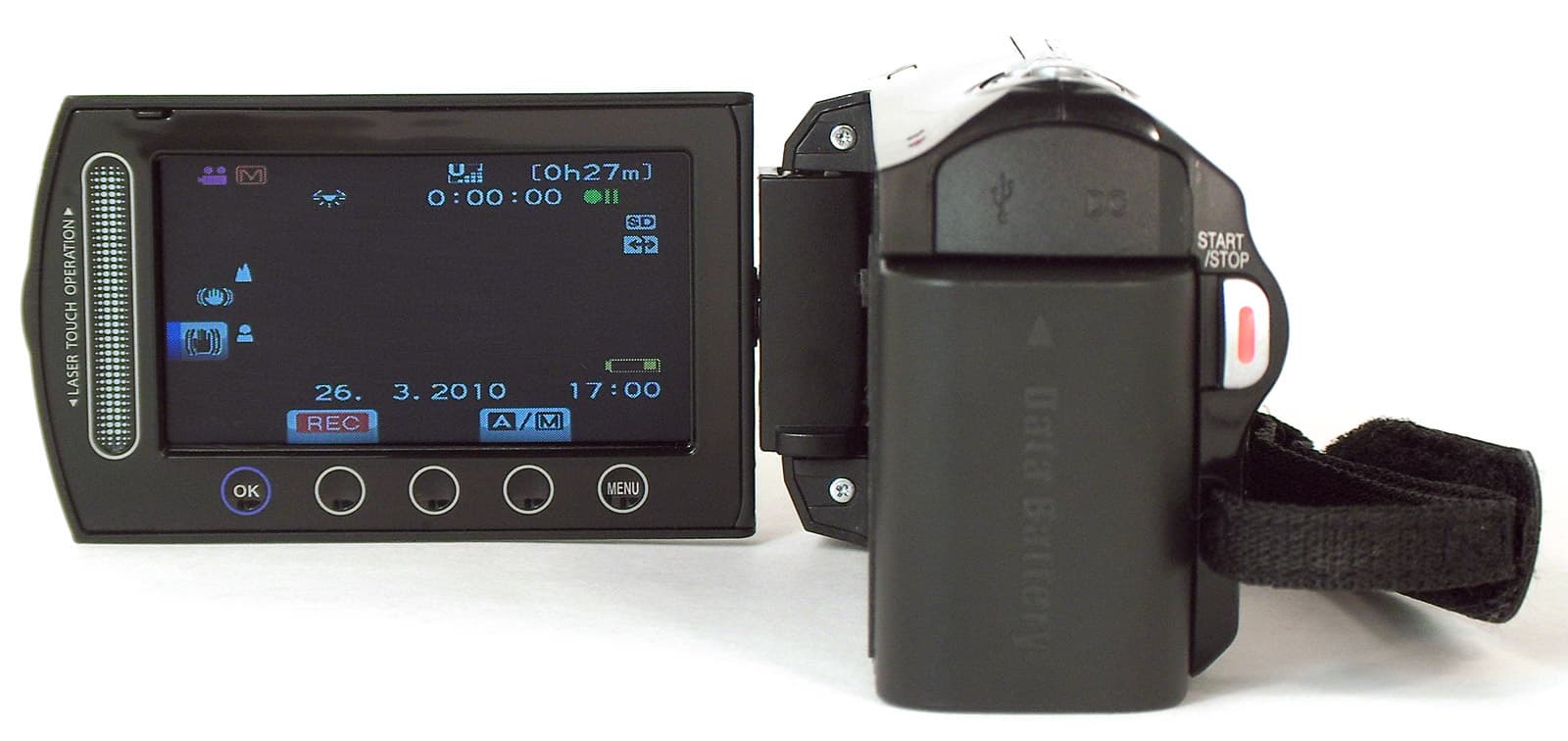 Называется она Laser Touch, и представляет собой совокупность датчиков, реагирующих на малейшее прикосновение. Данная технология лишена недостатков, которые присущи двум другим распространённым технологиям: классическим кнопкам и сенсорным экранам. Ведь для нажатия кнопок требуется применить силу, что неизбежно повлечёт за собой тряску и подёргивание камеры. Сенсорный экран в этом отношении гораздо удобнее, однако во время навигации по экрану пользователь заслоняет пальцем картинку, а после недолгой работы экран выглядит, мягко говоря, не изящно (если, конечно, не вести съёмку в чистых хлопковых перчатках).