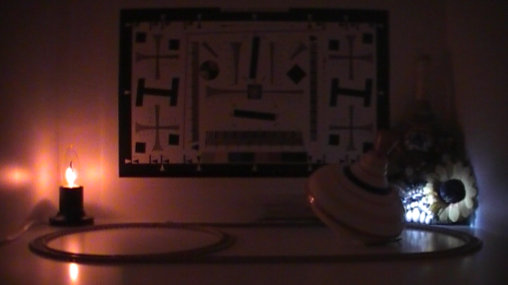 Данное тестирование проводится согласно опубликованной методике в целях установления чувствительности видеокамеры в неизменяемых условиях, а также для определения относительной чёткости выдаваемой картинки; результаты этих тестов аккумулируются на сравнительной странице.