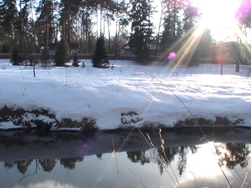 Съёмка проводилась солнечным днём. Качество картинки вполне приемлемо для SD-камеры, автоматический баланс белого работает чётко, не ошибается. Помимо этого, в следующем ролике можно наблюдать корректную и своевременную работу автоматической компенсации фоновой засветки, которая приглушает яркое небо, делая различимыми детали лесной опушки.