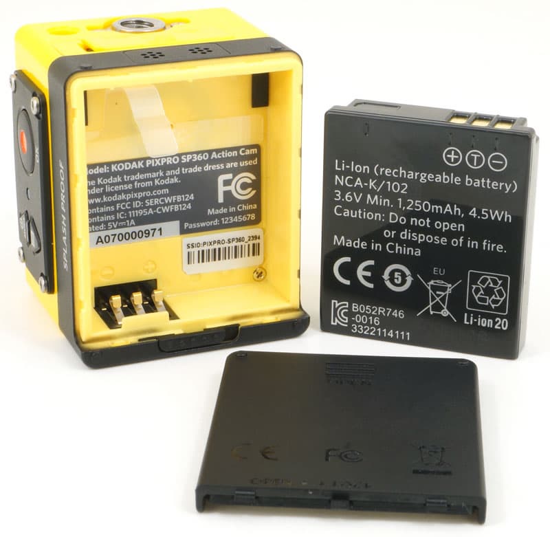 Сторона куба, противоположная объективу, представляет собой сдвижную крышку, которая фиксируется защелкой. Под этой крышкой расположен аккумулятор емкостью 1250 мА·ч. Данного запаса энергии хватает для 160 минут беспрерывной видеозаписи в максимальном режиме 1920×1080 30p с выключенным Wi-Fi. Без малого три часа, просто великолепный результат! Кстати — и это очень важно! — камера практически не нагревается во время длительной работы.