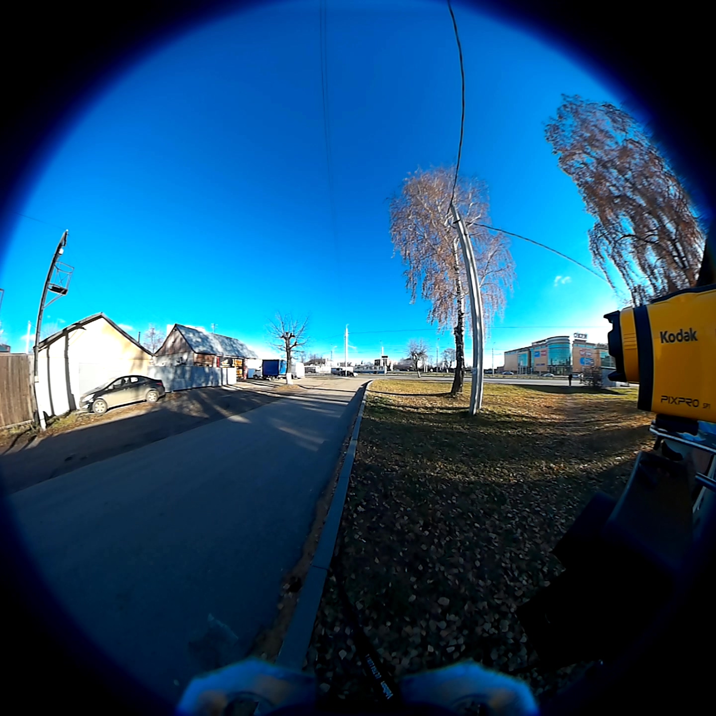 Прежде всего (вернемся на секундочку к примерам выше) любой видит, что высокой разрешающей способности в рассматриваемой камере нет. Разрешение — не ее конек. Основная цель нашей камеры состоит в другом: в фиксации всего происходящего с максимальным углом обзора, с наибольшим охватом. Так, на обоих стоп-кадрах, в правой их части, можно видеть корпуса еще двух экшн-камер (их обзоры готовятся, не сомневайтесь), которые были прикреплены к единому основанию, установленному на штатив. Более того, на правом квадратном стоп-кадре, в нижней его части, можно заметить угол крепления и даже одну ногу штатива, попавшие в кадр. Теперь нетрудно представить, каков угол охвата у камеры.