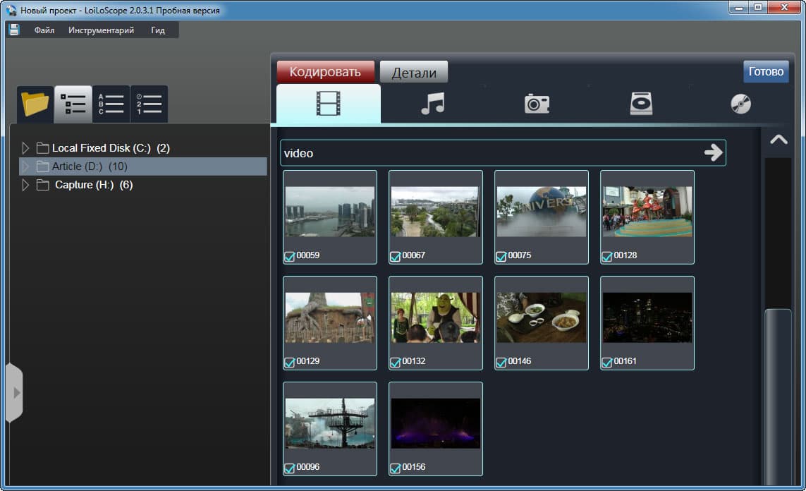 Рабочее пространство программы подверглось некоторым изменениям. Чуть иначе, посерьёзнее, чем в прежней версии, выглядит файловый браузер, позволяющий теперь изменить способ отображения медиаконтента, отсортировав его по дате либо развернуть его в дереве папок. Щелчок по миниатюре видеофайла отправляет данный файл прямиком в рабочее пространство программы. Впрочем, перетащить файл можно и мышкой.