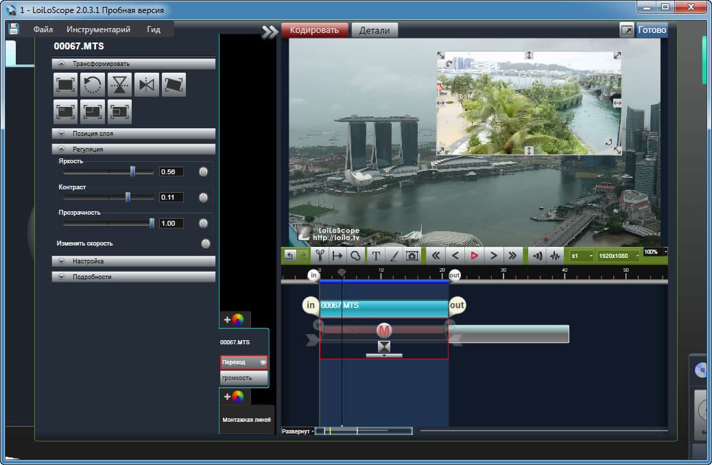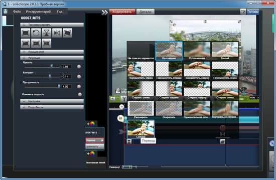Мы до последнего надеялись, что LoiLoScope 2 научился экспортировать видео без перекодирования. Ну как ещё можно понять название пункта Экспорт для видеокамеры? Но увы — и здесь происходит полное перекодирование всего материала; неважно — применялись к нему фильтры или нет.