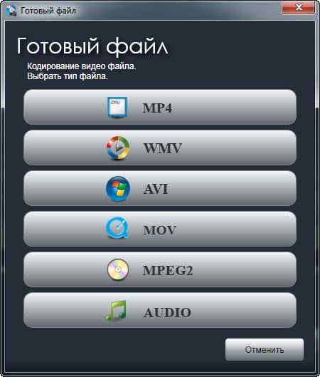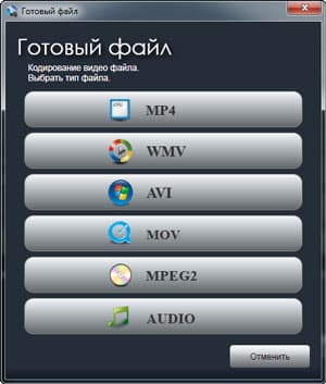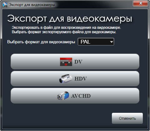 Экспорт готового проекта из программы теперь возможен во множество форматов, все эти пункты собраны в отдельной вкладке Кодировать. В большей степени здесь интересны такие пункты, как Конечный файл, Экспорт для видеокамеры и Инструмент для создания DVD/Blu-ray.
