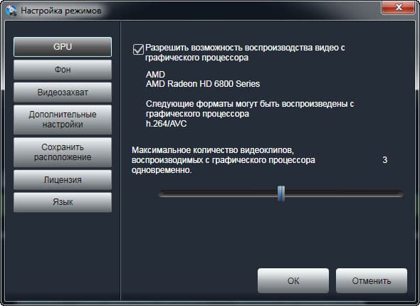 Обе карты одинаково успешно отображают и воспроизводят видео на лету, какие бы эффекты к нему ни применялись. Что касается проигрывания таймлинии с несколькими слоями — тут немного сложнее. Это количество определяется в настройках; максимально допустимое число — пять. Именно столько слоёв программа в состоянии «смешать» и отобразить без предварительного просчёта силами графического процессора. Однако на практике столь радужные обещания исполняются не всегда. Чем «тяжелее» видео, тем больше машинного времени тратится на декодирование потока. Если же их, потоков, несколько или файлы находятся на одном и том же диске, то пользователь наверняка встретится с кратковременными «фризами», замираниями воспроизведения. Так, можно быть уверенным, что никакой обещанной плавности воспроизведения вы не увидите, если поместите на таймлинию три или четыре слоя видео Full HD с частотой 50 кадров в секунду, сжатого кодеком H.264.
