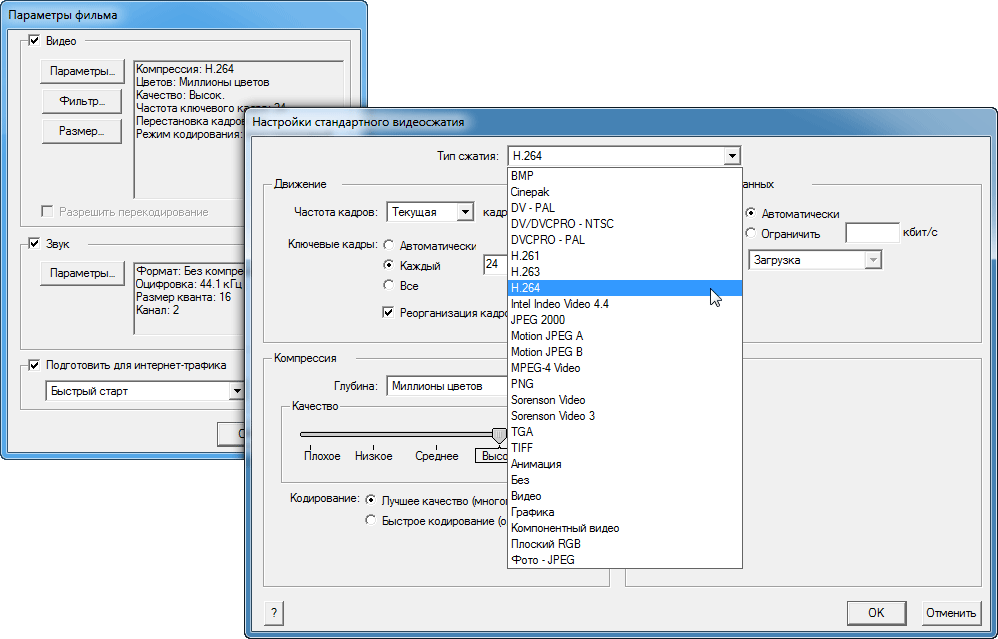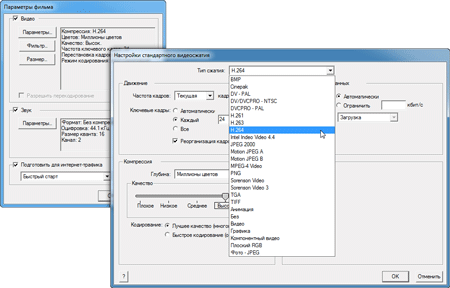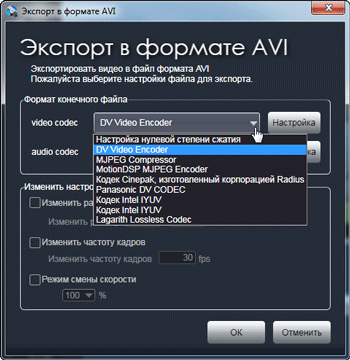 То же самое касается и пункта AVI. Программе доступны все кодеки, установленные в системе. Архиполезное умение, редко встречающееся в любительских программах.