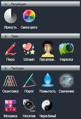 Фильтры, имеющиеся в программе, теперь собраны в отдельном окне-кармане и разложены по категориям (думается, список их будет пополняться). Все эти фильтры работают в реальном времени, то есть непосредственно во время просмотра расположенного на таймлинии видео. Это парадоксальное (на первый взгляд) умение программы уже обсуждалось: такой скорости работы мы обязаны видеокартам, производящим сложные вычисления на лету.