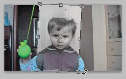 При этом геометрическим искажениям разрешается подвергать только фотографию, с которой будет начинаться процесс морфинга (в нашем случае — чёрно-белую фотографию). Видеокадр с малюткой послужит лишь фоном, для ориентации при подгонке; изменять его каким-либо образом строго воспрещается.