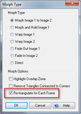 Во время работы вы можете постоянно контролировать будущий результат — для этого предназначено нижнее окно. Когда все точки расставлены по местам, не забудьте в настройках морфинга отметить флажком пункт Re-triangulate for Each Frame. Трудно утверждать со стопроцентной уверенностью, но, кажется, активация этого параметра позволяет получить более плавные границы в результате морфинга.
