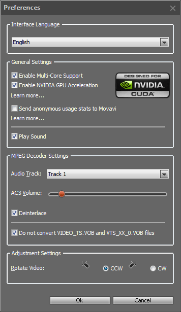 Как видим, здесь можно включить/отключить поддержку нескольких ядер ЦП и активировать кодирование силами графического процессора NVIDIA.