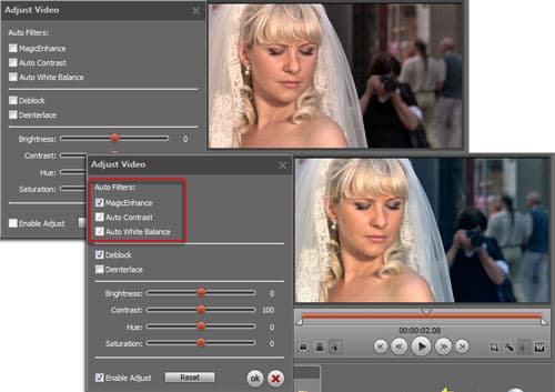 Кроме этих необходимых инструментов, присутствует здесь и параметр Deblock, при активации которого устраняются артефакты сжатия (те самые "квадратики", часто присутствующие в видео из-за нехватки битрейта или "кривости" кодека). Чуть ниже активируется деинтерлейсер, обычно необходимый при кодировании интерлейсного материала в прогрессивное видео.
