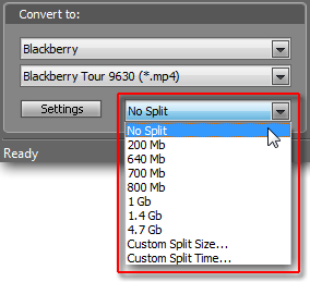 Наконец, обратим внимание ещё на один инструмент — сплиттер. Им определяется способ создания конечного материала: единым файлом (No Split), или поделенным на несколько файлов определённого объёма и даже длительности в минутах!