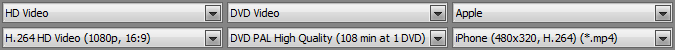 - AVC 480x320, 25 кадр/сек, битрейт видео 1000 Кбит/сек, прогрессивная развёртка; звук AAC стерео с битрейтом 128 Кбит/сек.