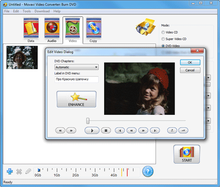 А вот с третьей кнопкой, BURN DVD, всё обстоит сложнее — по нажатию этой кнопки начнётся процесс конвертации материала, после чего автоматически запустится ещё один модуль: DVD-авторинга.