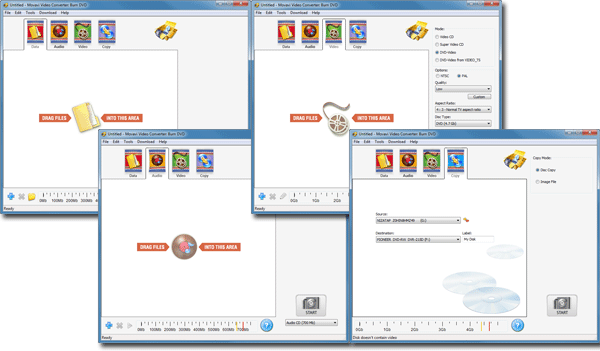 Однако одним лишь авторингом умения данного модуля не ограничиваются. Вкладки, расположенные в верхней части программного окна, скрывают под собой соответствующие инструменты: запись на оптический носитель данных, создание CD-audio диска, DVD-видео диска, и копирование дисков, в том числе из файла образа (*.ISO).