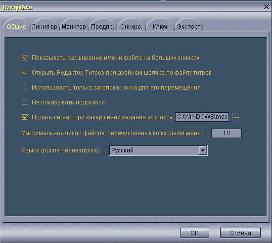 В появившемся окне Экспорт на вкладке Общие в поле «MPEG файл» следует указать имя и местоположение