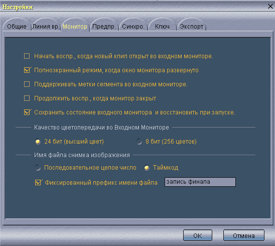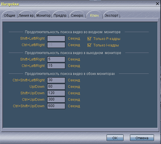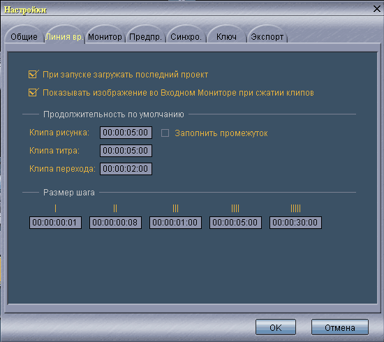 заданными на вкладке Линия Времени окна Настройки. Данная вкладка определяет клавиатурные