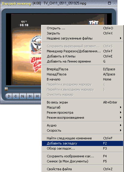 эти операции для всего клипа: найдя начало рекламы, нажмите F2,