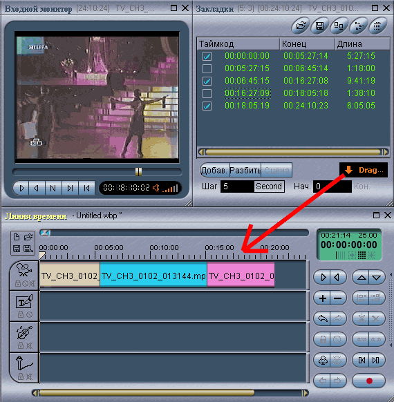 проекте. Видеофайл (или его части), файлы титров, звуковые файлы, помещенные на дорожку фоновой музыки