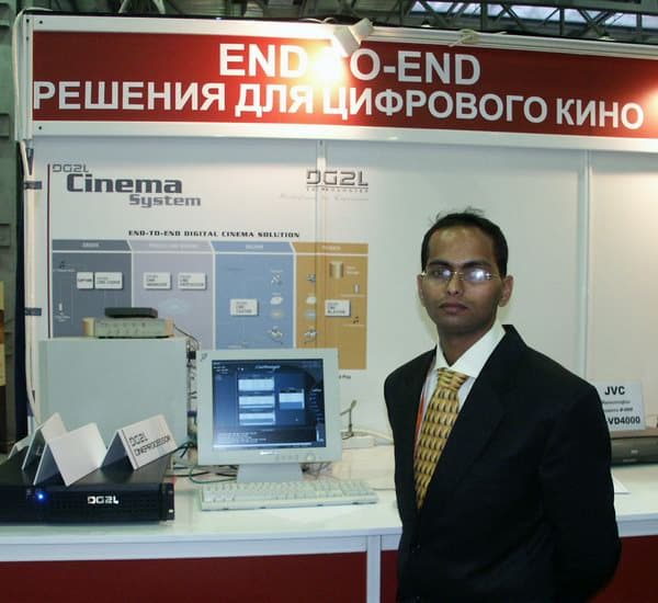 По площади стенда ЭРА была традиционно одним из сильнейших участников и даже умудрилась интегрировать в конструкцию 2 небольших кинозала для демонстрации проекторов JVC с технологией D-ILA для электронных театров. Здесь были представлены и источники сигналов - магнитофоны D-VHS и весьма любопытная система DG2L Cinema индийской фирмы "Диджи ту эл" для подготовки, защиты и распространения контента высокой четкости в MPEG-4 по IP-сетям через любые физические каналы или на цифровых носителях.