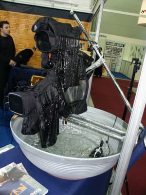 Больше всех соригинальничала компания ОВАКО, применив натюрморт с бутылкой водки на фоне леса. На площадке отечественного производителя АЛМИ тоже стояли камеры, но только "в одёжке". Для доказательства отличных защитных свойств своих всепогодных чехлов специалисты соорудили небольшой фонтан, в котором камера подвергалась постоянной "влажной обработке".