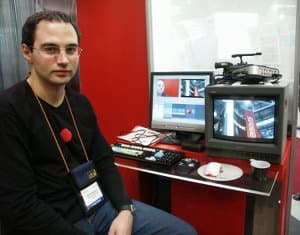 Тут же монтажер "Последнего героя" Андрей Назаров показывал систему, "которая умеет всё", а именно программу композитинга/морфинга/анимации/коррекции Shake v3.5. В качестве примера использовались съемки уходящей вдаль улицы, в которой к разным областям были применены выборочная цветокоррекция/шумоподавитель, заменено небо, дорожные знаки, применена фоновая градиентная подсветка. В результате банальный видеоряд приобрел супер-фактурный вид в стиле футуристических кинокартин а-ля "Хроники Риддика".