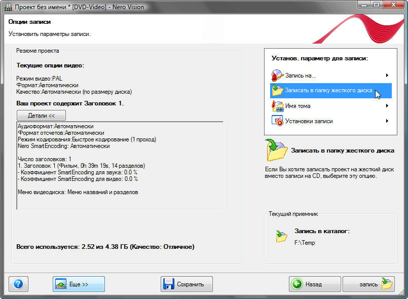 Зато итогом работы становится диск либо папка с файлами, при этом нам удалось избежать лишнего перекодирования!