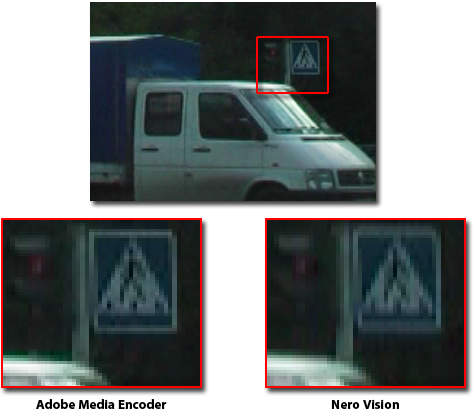 Для того, чтобы объективно судить о способностях кодировщика, в первую очередь следует вспомнить о предназначении каждой из сравниваемых программ. А вспомнив, мы поймём, что приведённое выше сравнение само по себе некорректно. Adobe предназначен для профессионального монтажа, а следовательно, в данном пакете чаще всего работают с профессиональным материалом. Это видео, снятое с помощью недешёвых видеокамер, никак не вписывающихся в любительский сегмент. Соответственно, и качество такого видео отличается от бытового материала, и в первую очередь отсутствием шума, которым сопровождаются практически все бытовые съемки. Этот-то шум Nero и удаляет с помощью обыкновенного размытия (кстати, в Adobe Media Encoder такая опция тоже присутствует, правда, по умолчанию она отключена).