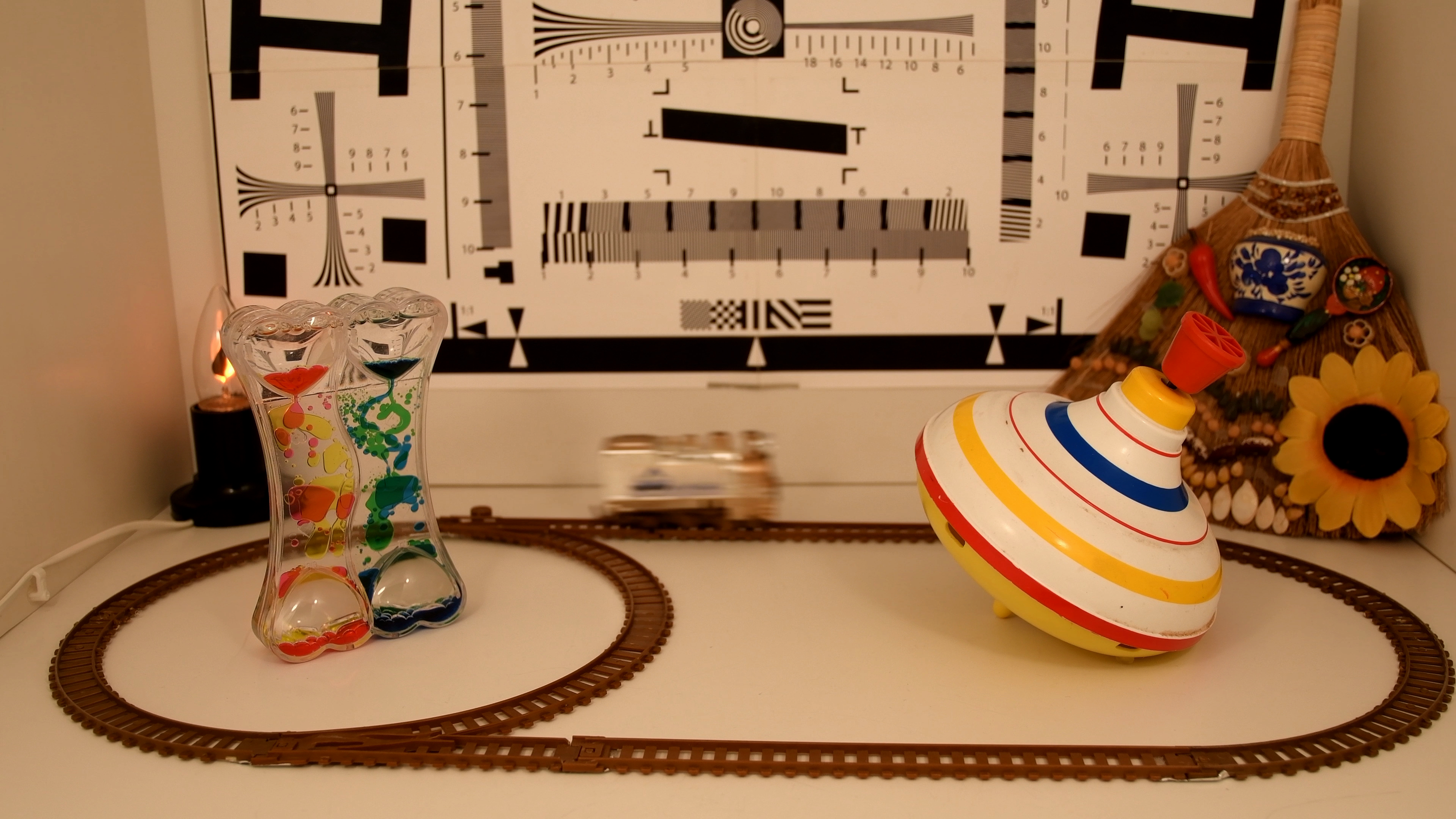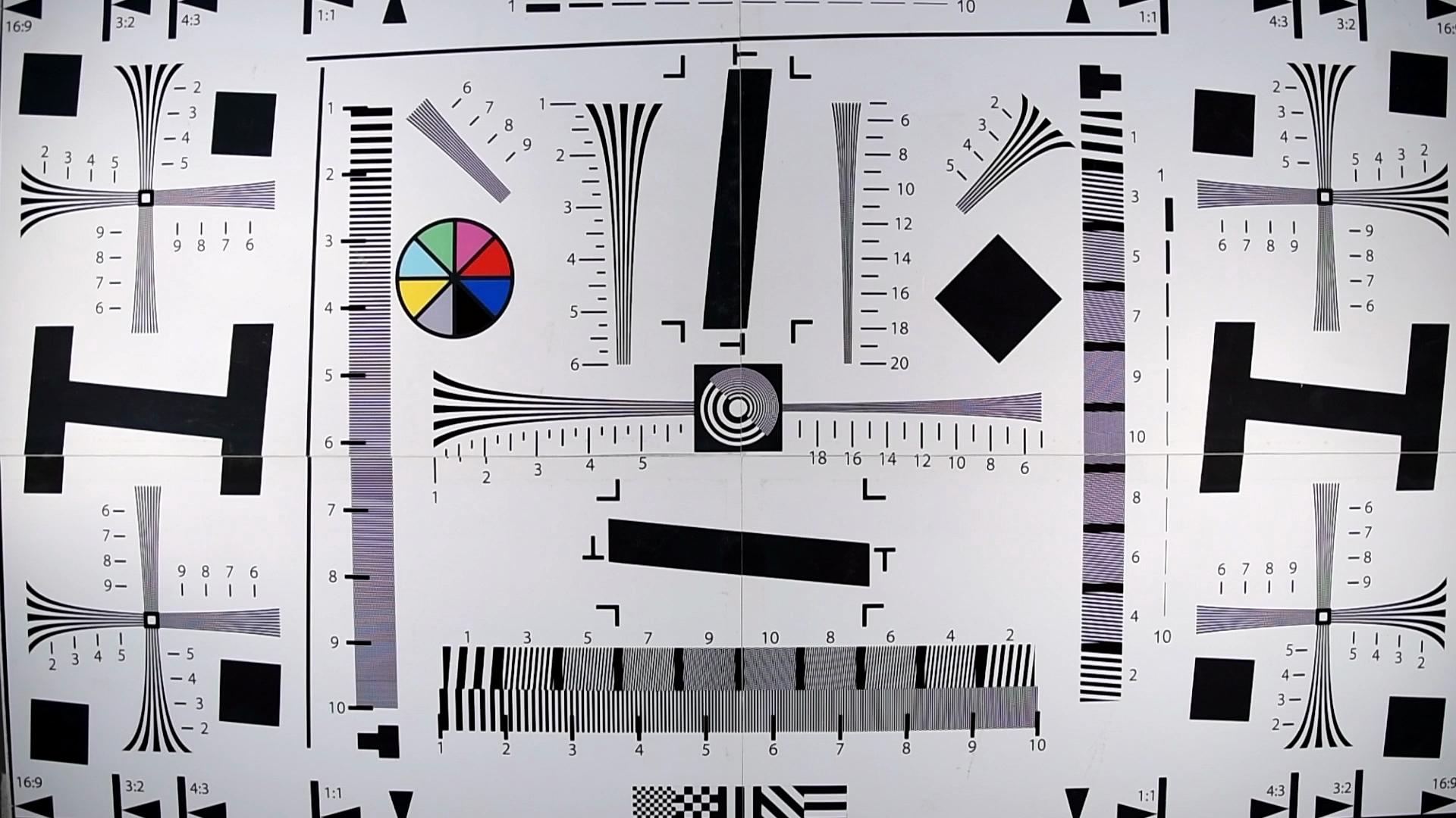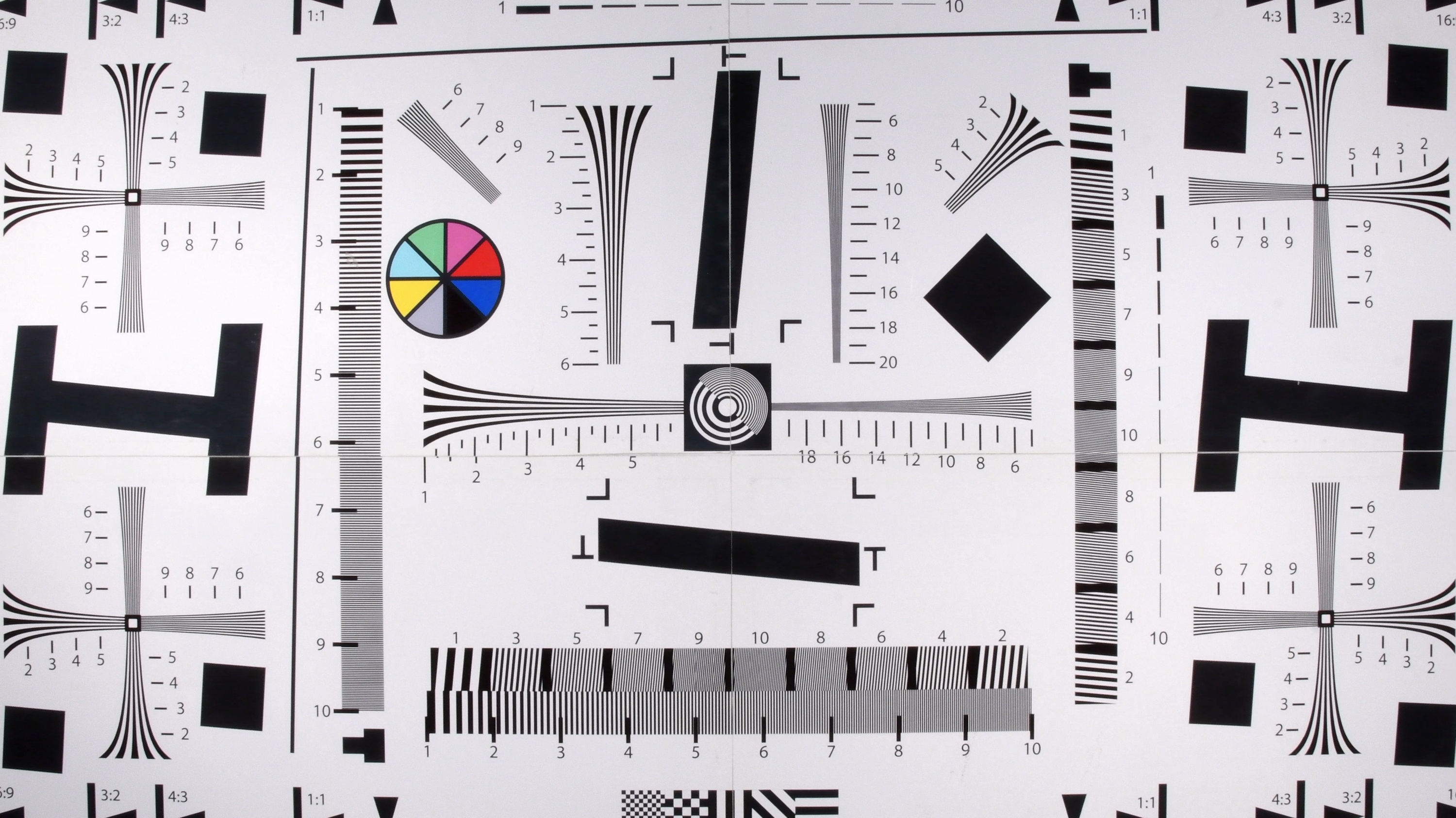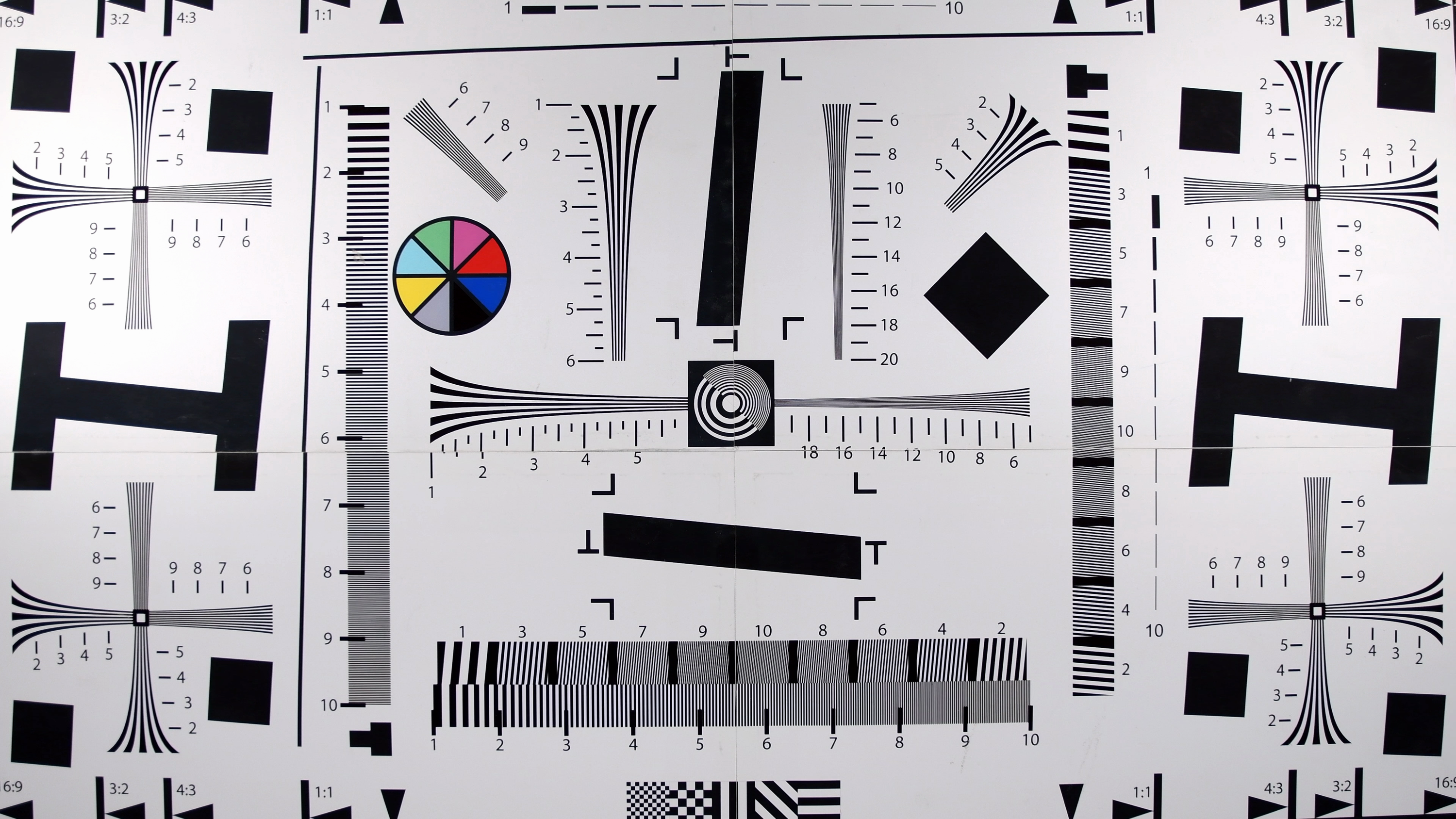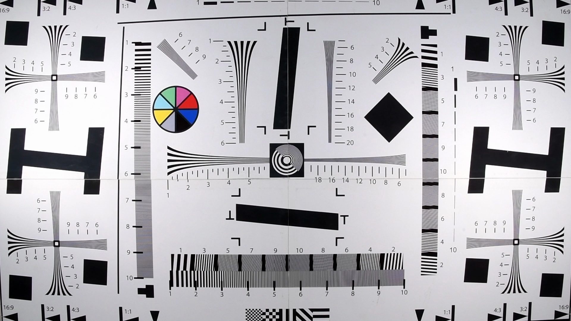 Разрешающая способность камеры в идеальном случае (4K) достигает 1600-1700 ТВ-линий по горизонтальной стороне кадра (зрительно может показаться что разрешение еще выше — но следует помнить о факторе искусственного «задирания» резкости). В Full HD разрешение снижается до 900 ТВ-линий. Можно отметить заметное изменение разрешающей способности при закрытии/открытии диафрагмы. В 4K ее закрытие приводит к снижению разрешения, кадр становится мутным, размытым. Но в Full HD этот эффект работает в обратную сторону: если при открытой диафрагме рассмотреть линии мешает выраженный алиасинг, то закрытая диафрагма, наоборот, сглаживает «эффект дуршлага», позволяя увидеть те самые 900 ТВ-линий.